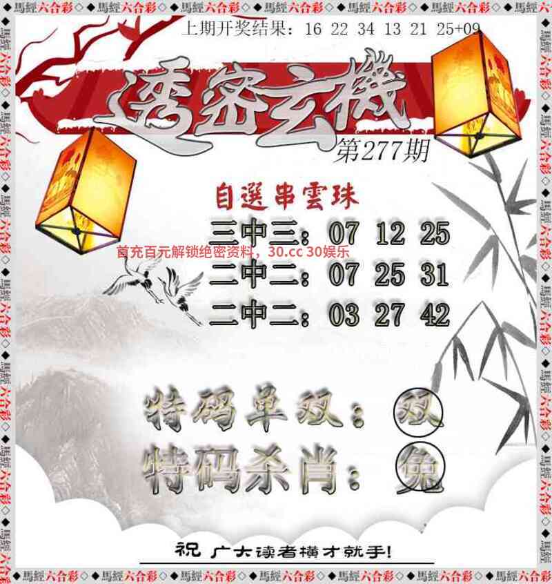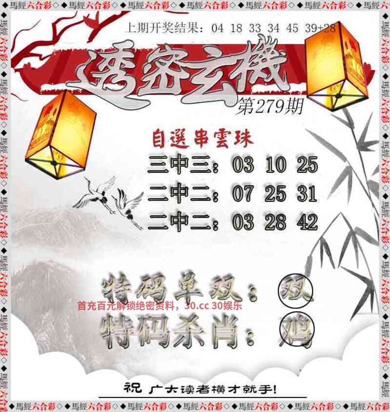 275期⑦码 | 39.23.14.45.30.25.12 | 开:鸡45中 |