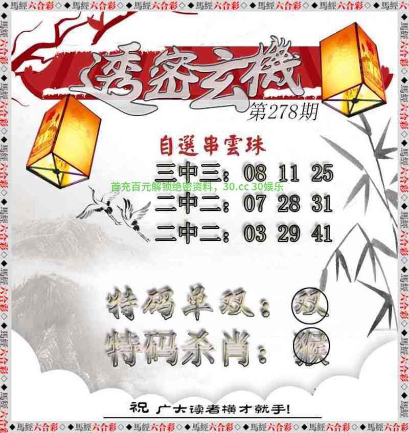 278期:绝杀一门╠333门╣开虎28错 |